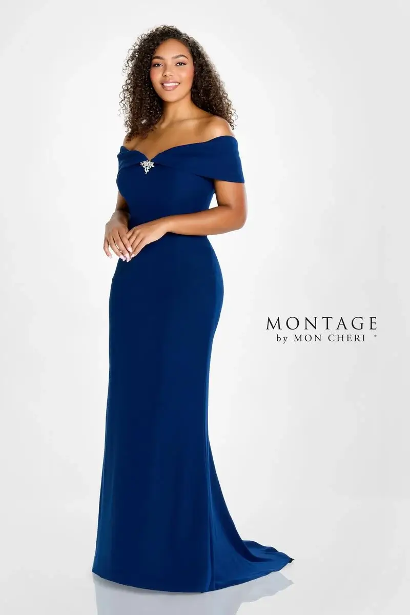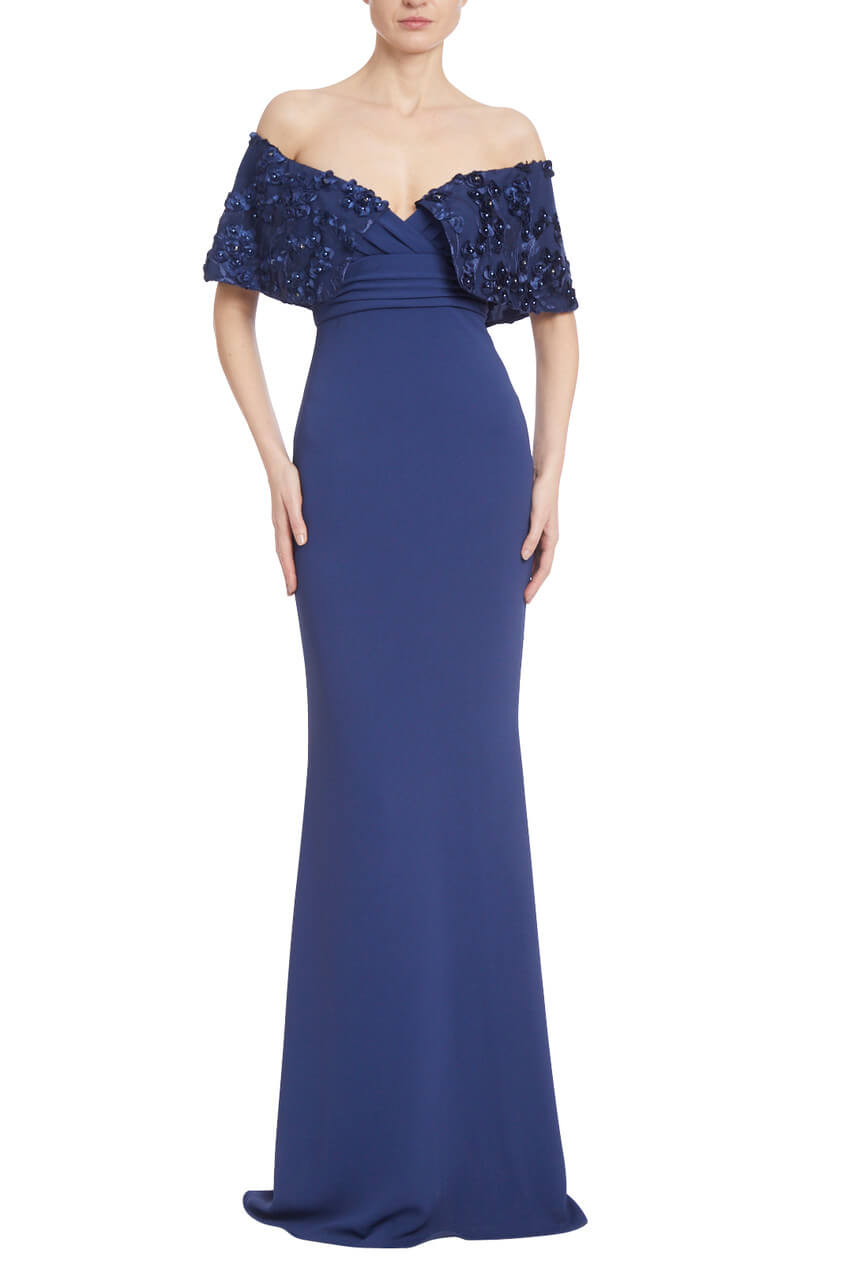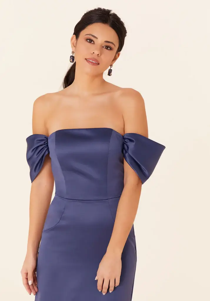 14Navy 3D Off the Shoulder Stretch Crepe
