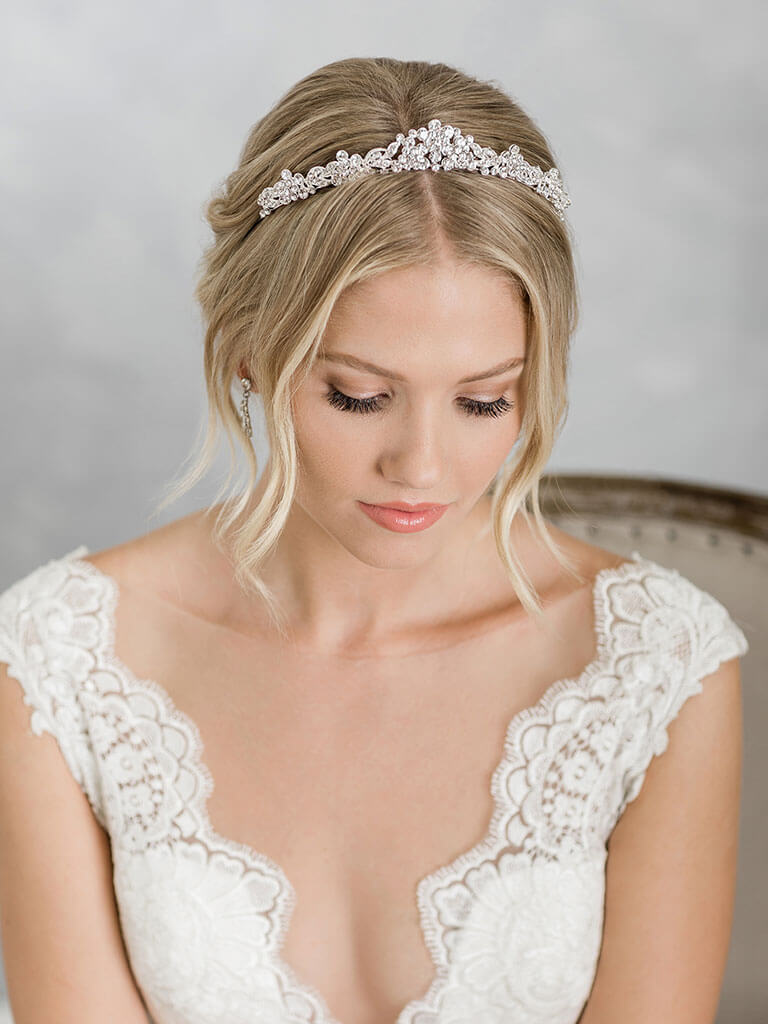 Petite tiara of opal crystals and rhinestones (available rose gold/opal, silver/opal, or silver/clear stones)