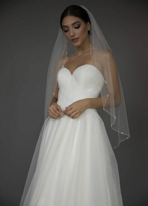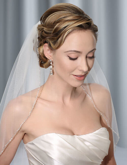 Cathedral Veil with pearls, bugle beads, and rhinestones