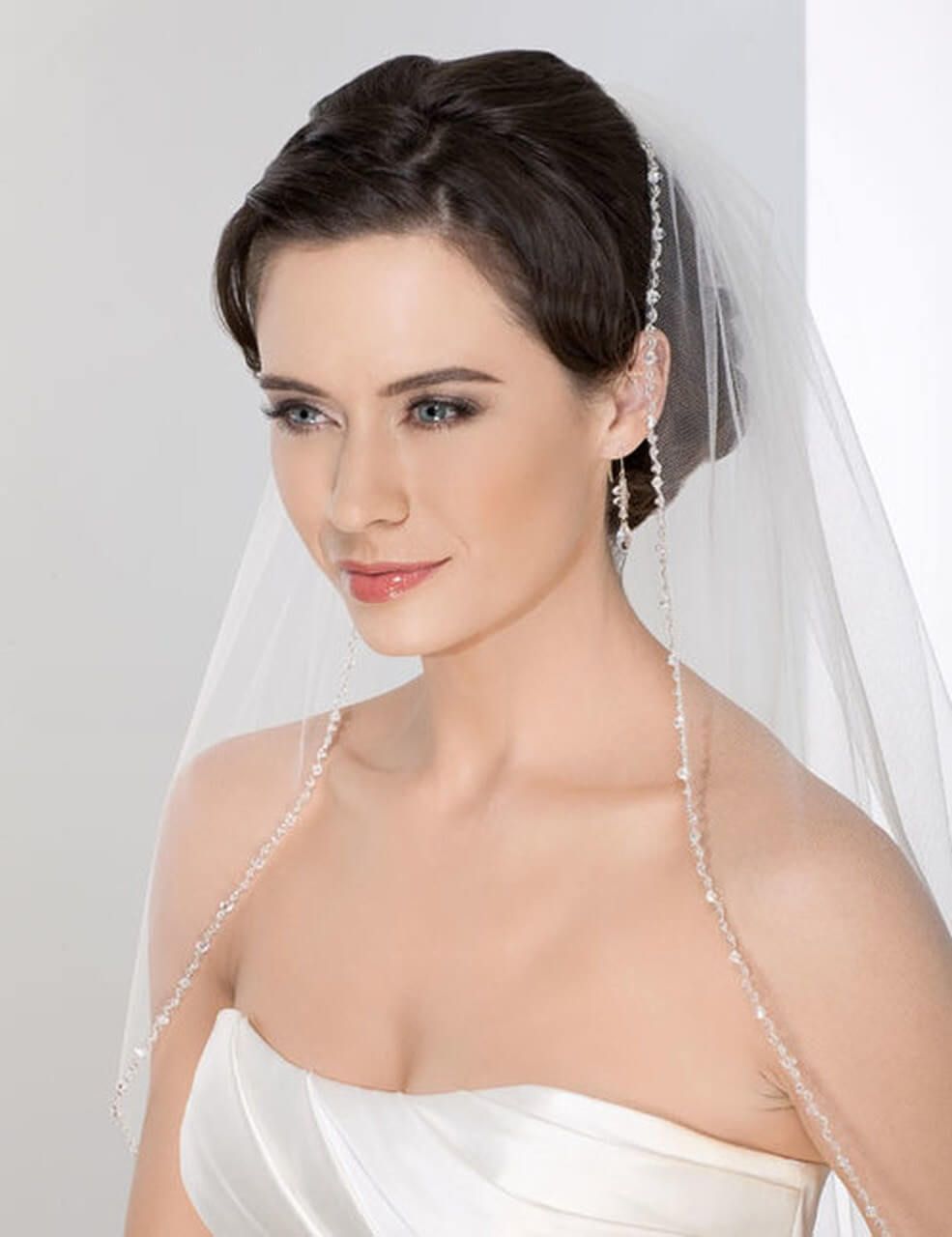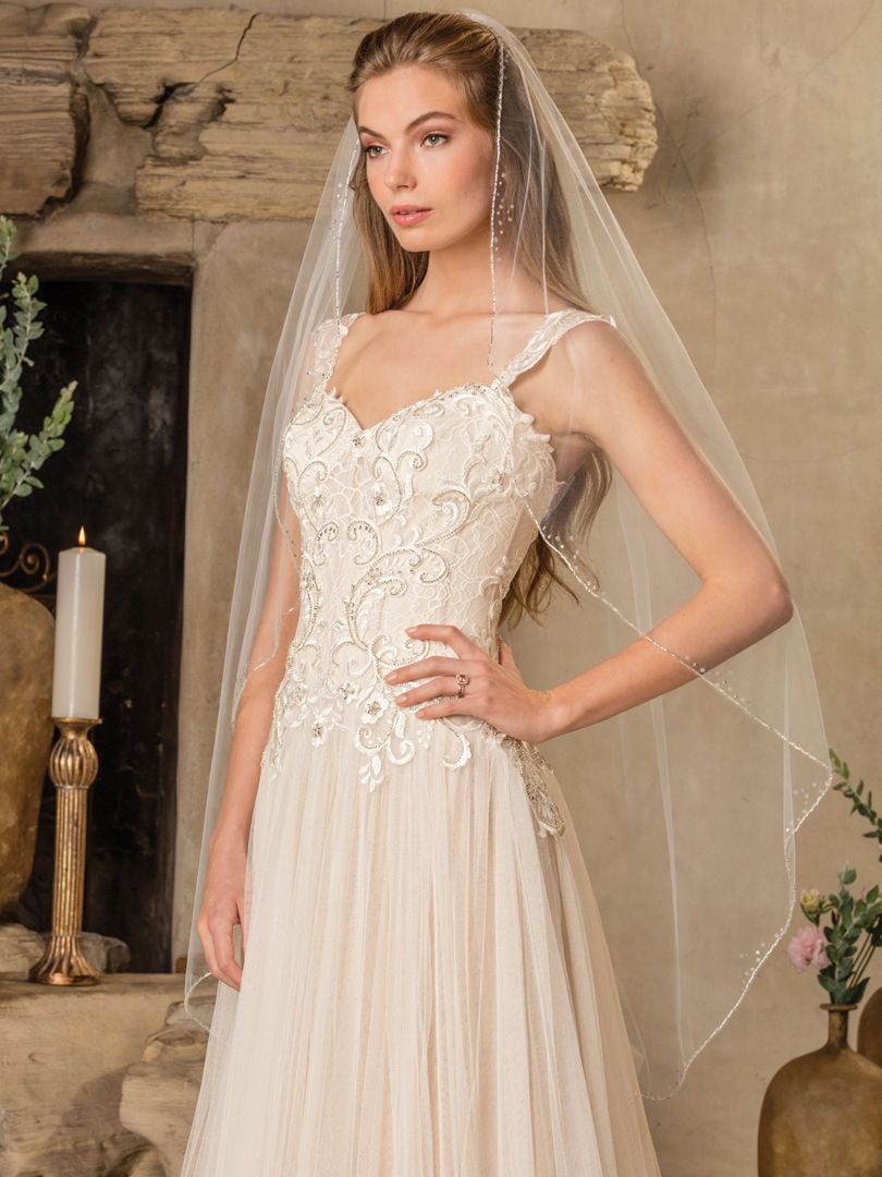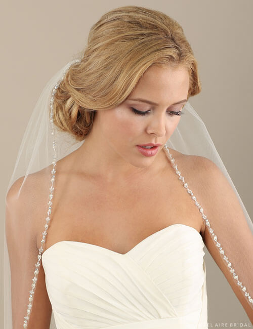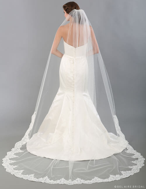1-tier cathedral veil with rolled edge at top and Alençon lace
