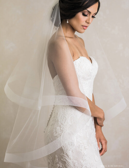 2-tier fingertip foldover veil with 2" wide horsehair edge