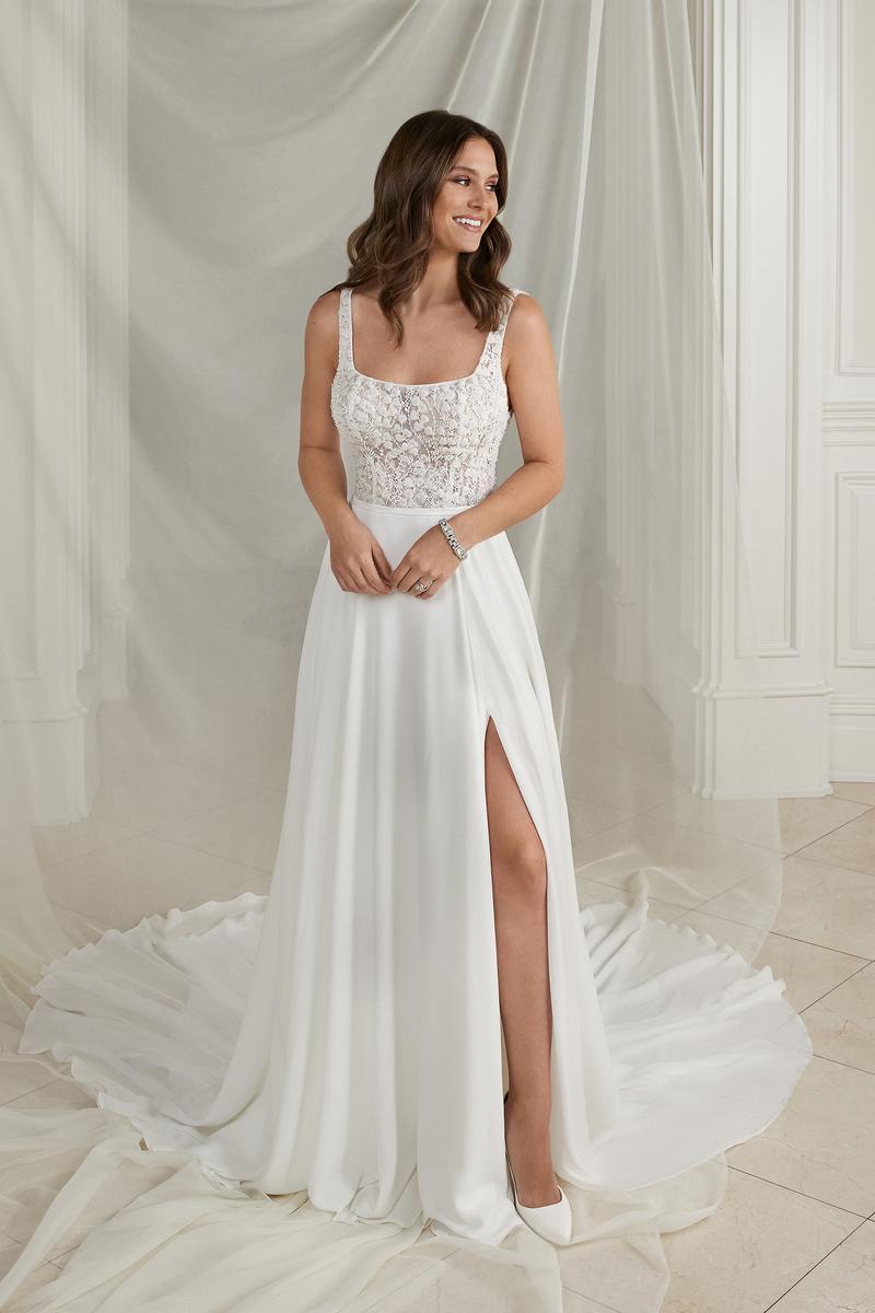 10PIvory Crepe Beaded Lattice Bodice Fit & Flare