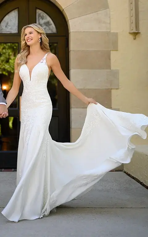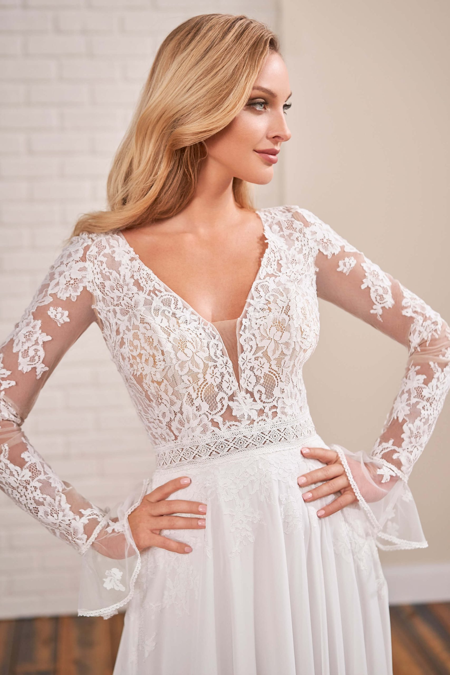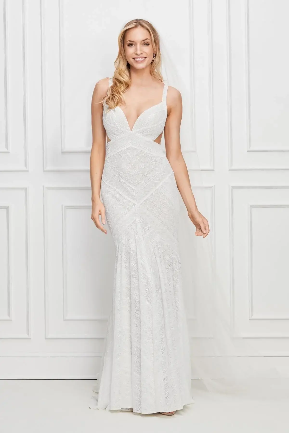 12Ivory/Porcelain Fit & Flare Crepe & Lace