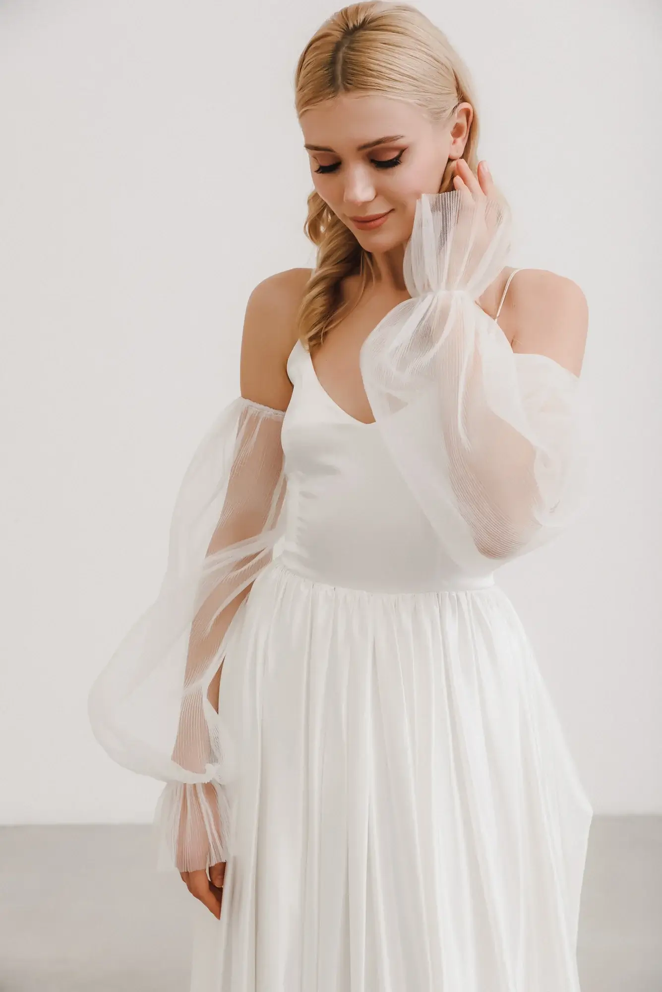 Spotted, Pleated Off-White Organza Sleeves ONLY