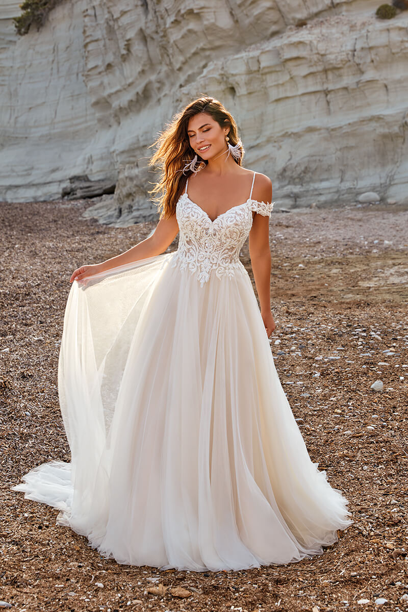 10Ivory/Cashmere Lace Beading & Tulle A-Line