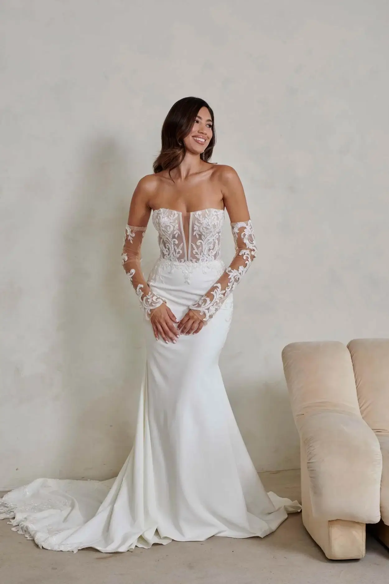 14Ivory Crepe & Beaded Appliqué (sleeves not available)