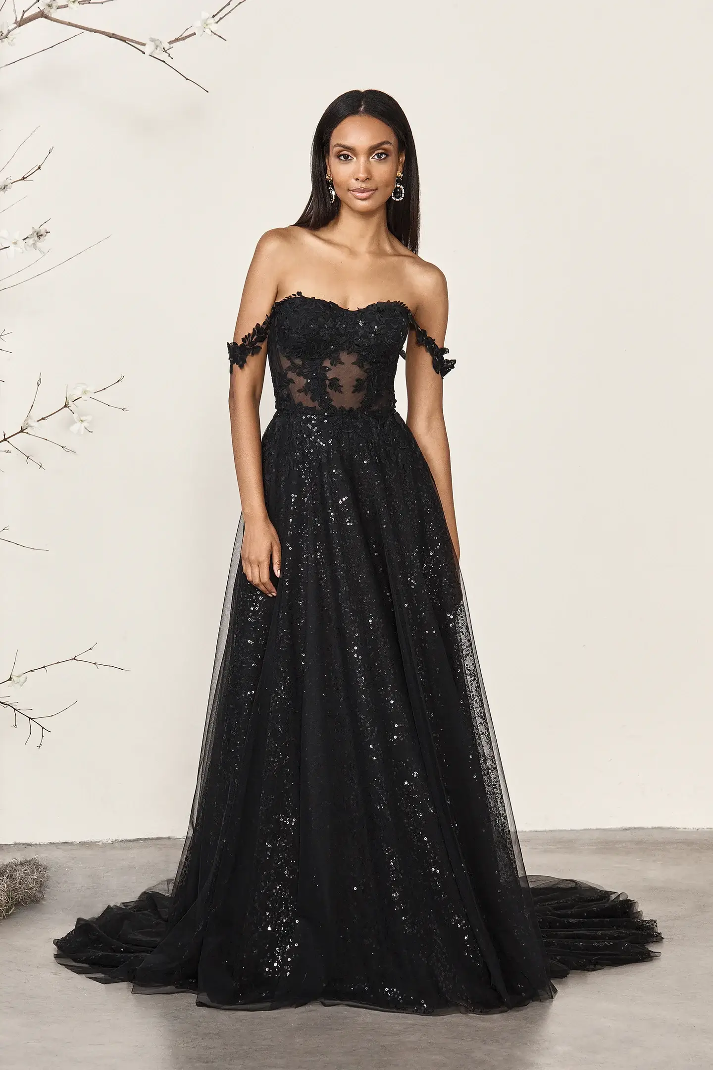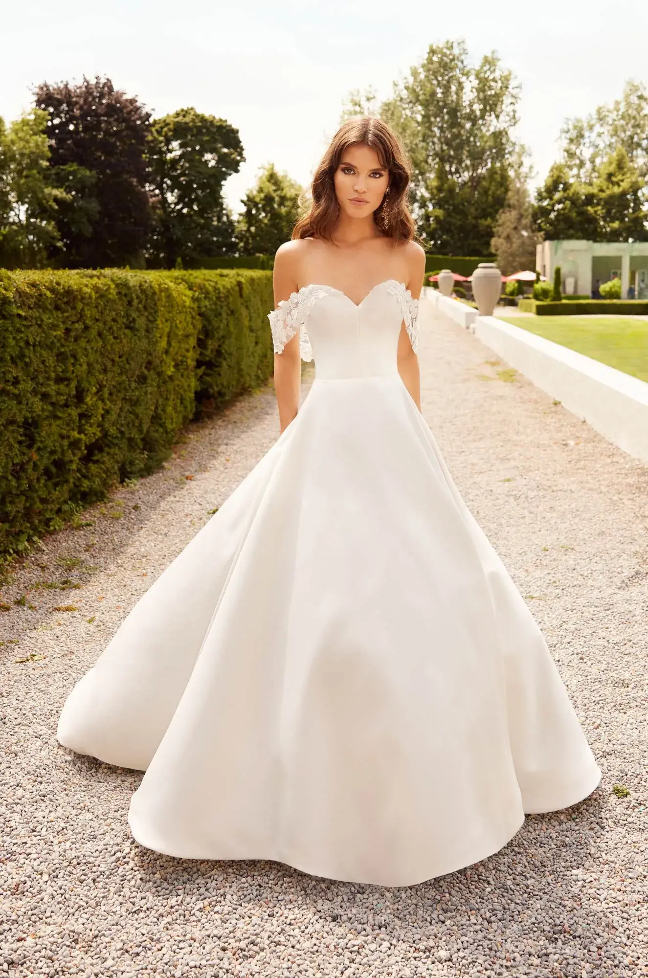12Ivory Mikado & Sequined Lace with Detachable Off Shoulder Straps