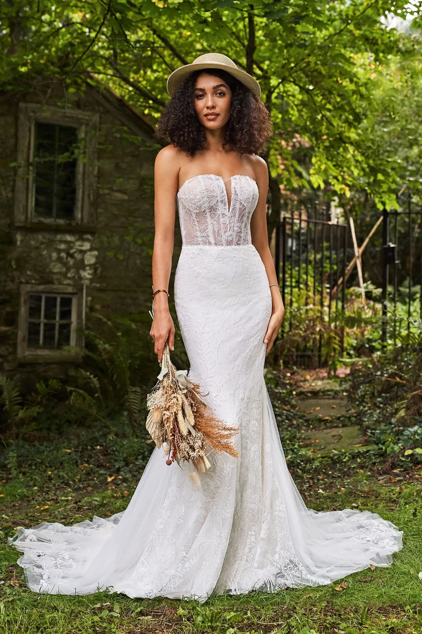 4Ivory w/Nude Illusion Sparkly Lace (Detachable extended train & sleeves)