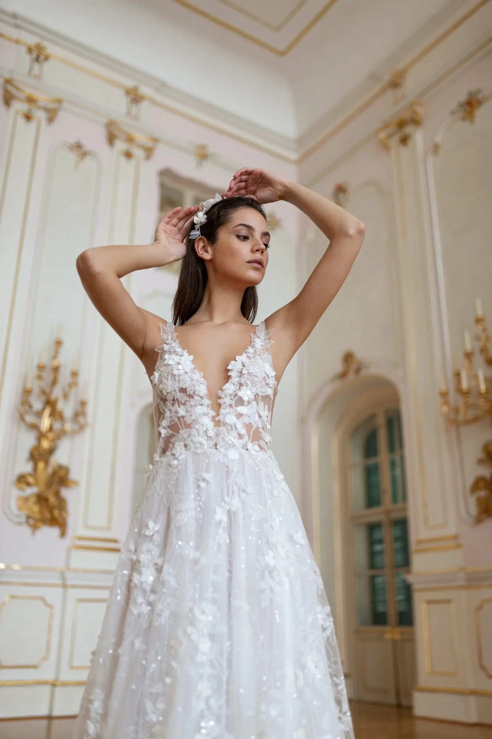 12Off White Stretch Mikado Lace & Beading on back (detachable bow)