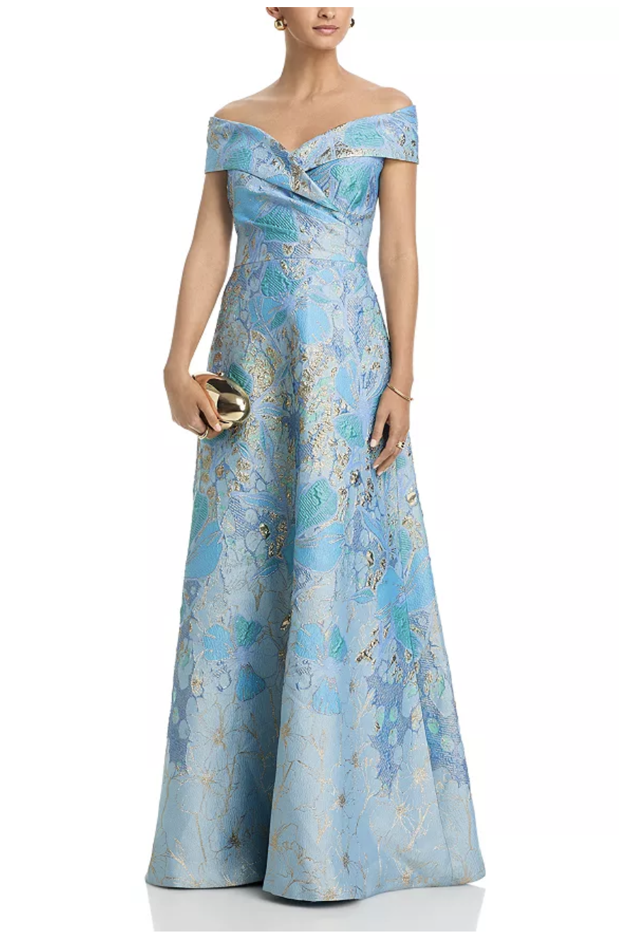 Aqua & Gold Brocade A-line