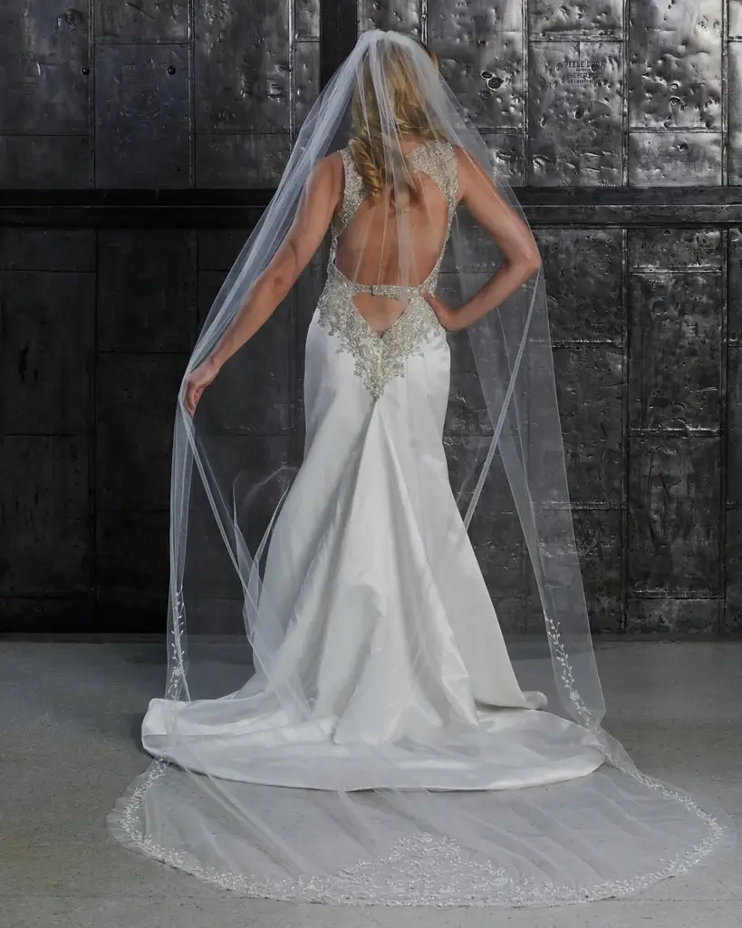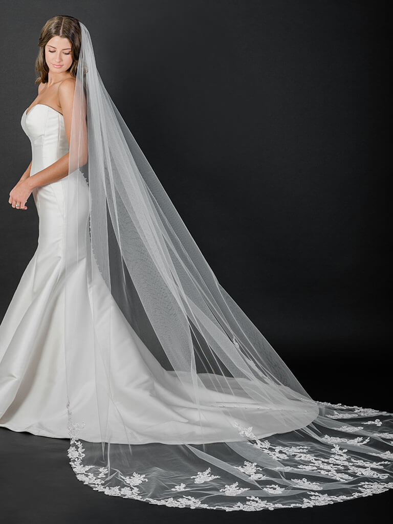 Ivory Tulle Scalloped Beaded Edge Cathedral