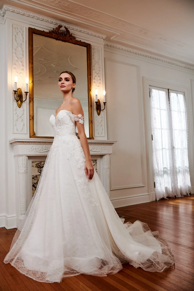 14Ivory/Nude Sparkle Lace A-Line with Optional Slit