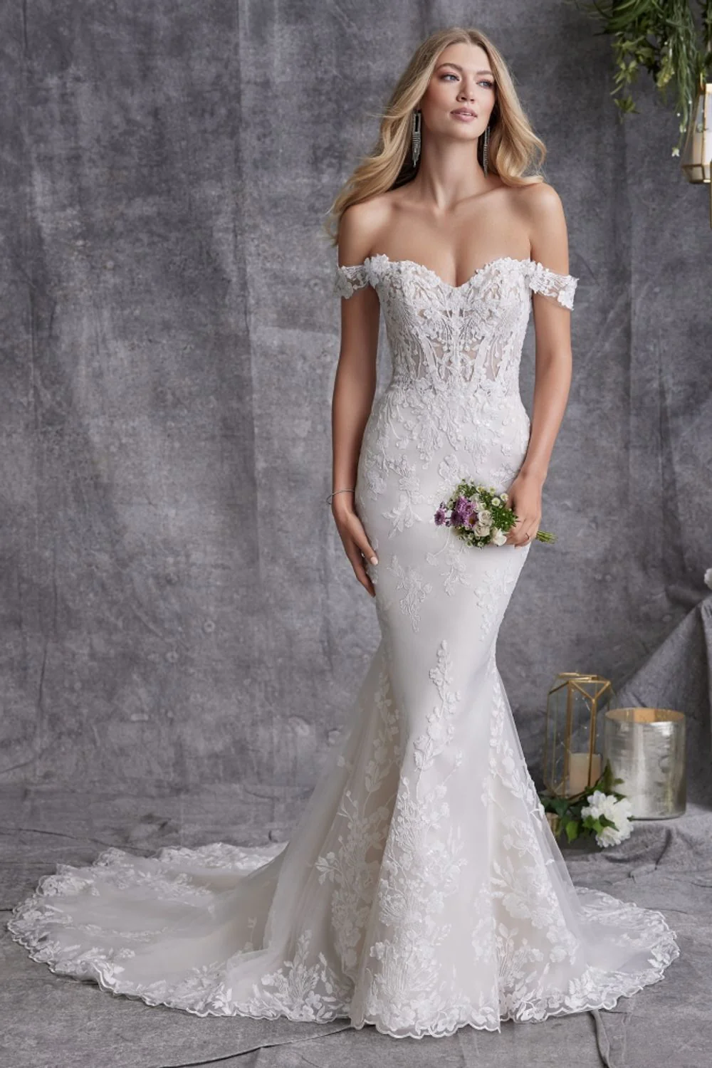 12Ivory over Cream Motifs Lace Tulle Fit and Flare